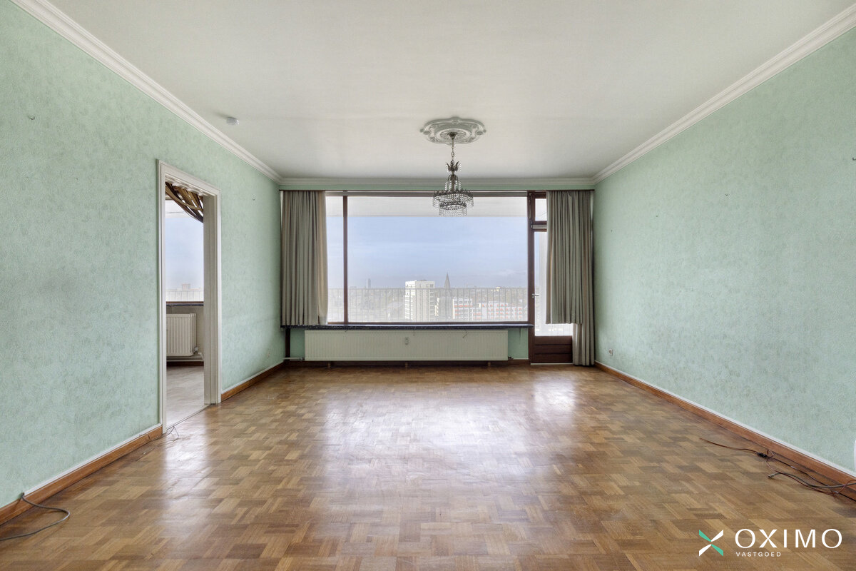 Dit op te knappen appartement bevindt zich op de 9de verdieping van de residentie waar de bekende Gentse film Aanrijding in Moskou werd opgenomen. Vanop deze verdieping geniet u van een prachtig uitzicht en een gunstige zuidwestoriëntatie. Dankzij de centrale ligging zijn er bovendien zeer vlotte verbindingen van en naar Gent.