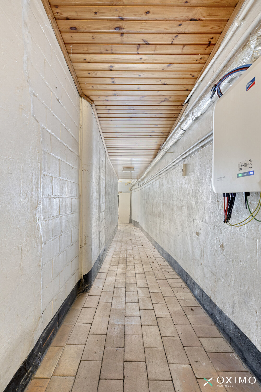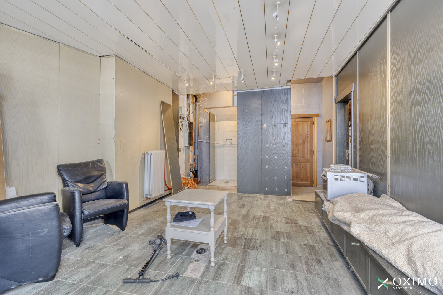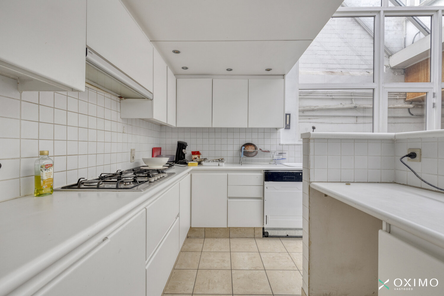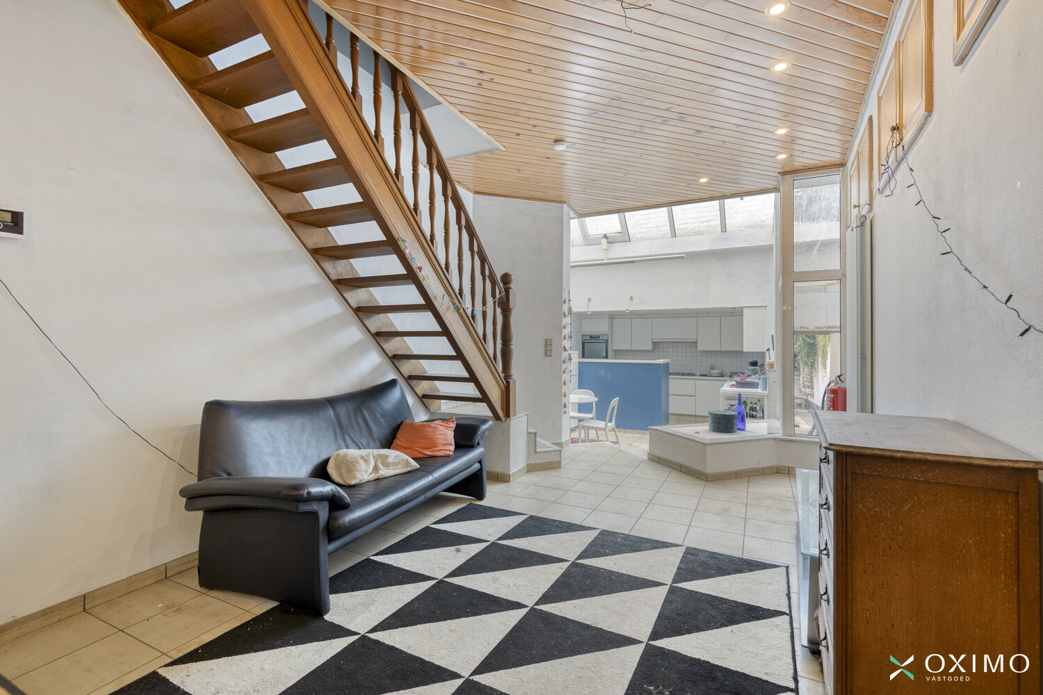Achteraan bevindt zich een grote buitenruimte waar u met wat creativiteit een gezellige stadstuin of patio van kan maken. Bovendien is er een bijgebouw aanwezig dat renovatie vraagt, maar tal van mogelijkheden biedt (atelier, gastenverblijf, hobbyruimte...).
